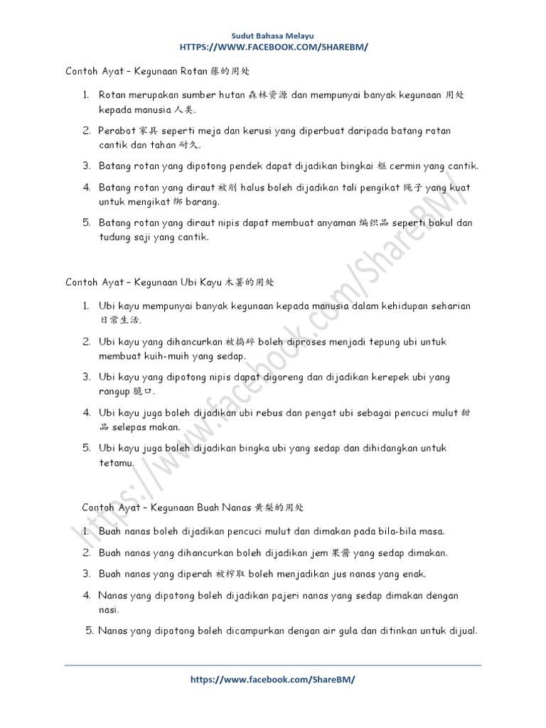 55 Contoh Ayat Kegunaan Bahan Pdf